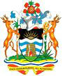安提瓜和巴布达国徽中心图案为盾徽。盾面上半部为冉冉升起的旭日,象征该岛国人民的独立、自由;下半部白、蓝相间的波纹代表加勒比海,窑塔象征该国发达的制糖工业。盾徽左侧为牝鹿和甘蔗,右侧是牡鹿和龙舌兰;上端有一只菠萝和木槿属植物花;下端的绶带上写着“人人全力以赴,方能取得胜利”。