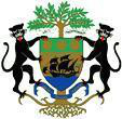 加蓬共和国国徽制定于1963年,它体现了瑞士纹徽专家路易斯·米勒曼独具匠心的设计思想:顶部的奥克美树伸展茂密的枝叶保卫盾徽,而这枚盾徽里一艘鼓满风帆的黑色船只,迎着金色的朝阳,正邀游在蓝色的大西洋上,船尾的国旗在风中飘扬,加蓬人民坚强不屈的民族精神随风传播到远方。这幅图案形象地反映了加蓬海上贸易的勃勃生机。帆船上端的3个金黄色圆球,象征国家丰富的矿产资源;盾徽两侧侍立的黑豹,象征英武骡悍的加蓬勇士。奥克美树下的白色饰带上,书写着拉丁文“团结使我们进步”字样;盾徽下方的蓝色饰带上,铭刻着加蓬格言:“团结、勤劳、正义”。