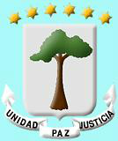 赤道几内亚共和国国徽的主要图案是赤道几内亚人民喜爱而且敬仰的“上帝之树”——红树。这种树在赤道几内亚境内的热带森林中极为常见,它有盘结伸延的树根,它的褐色树干粗壮高大,直插云霄,它繁茂的枝叶庇护着一代又一代人民。国徽中的这棵树不仅表现了国家的木材生产及加工,同时预示着新兴的共和国定将坚实、自由、独立地屹立在这片大地上。红树上端的6颗金黄色六角星,代表共和国的6个组成部分:大陆上的木尼河区以及前西属岛屿——比奥科岛、安诺本岛、科里斯岛和大小埃洛贝岛。国徽下部的褐色饰带上用西班牙文书写着格言“团结、和平、正义”。