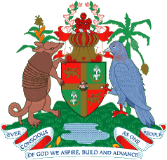 格林纳达国徽启用于1974年,国徽正中一个黄色的十字,表达了格林纳达人民对天主教的信仰。十字交叉处一艘帆船,为纪念1498年8月哥伦布发现该岛。国徽上有代表该国主要农作物的白色肉豆蔻和黄色香蕉,以及表明格林纳达与英国传统关系的金色雄狮。国徽上方是一个象征主权的头盔和花环。基部是格林纳达的锦绣河山,山峦起伏,环抱着碧绿的火山湖。白色饰带上写着“团结如一人,建设国家,不断前进。上帝与我们同在”。国徽左侧的灰色狄犹和可可树, 以及右侧的红晴蓝鸽和椰树,都代表格林纳达特有的动植物资源。