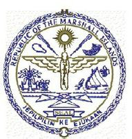 马绍尔群岛共和国国徽启用于1986年,国徽呈圆形。圆面中间为一只展翅的海鸟,海鸟之上是一轮光芒四射的太阳。太阳左下方是石头,代表当地人用于制作手工艺品的工具;右下方为鱼网,象征该国丰富的渔业资源和有发展潜力的渔业。海鸟左侧是椰子树,代表该岛国重要的经济作物;右侧为帆船,象征该国的航海和捕鱼业;下方的图案为航海用的导航工具。周围的上部用英文写着“马绍尔群岛共和国”。