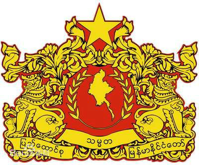缅甸联邦共和国国徽中间为缅甸版图置于橄榄枝中间,国徽两侧的云纹状装饰带是幸福极乐的天国的标志。两头圣狮为守护兽, 象征保卫国家的坚强力量。两者之间为花卉状图案,顶端为一象征独立的五角星。下方是一条黄色绶带, 用缅文书写着“缅甸联邦共和国”。该国徽于2010年10月21日开始使用,由1974年版缅甸国徽的修改而来。