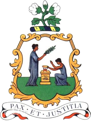 圣文森特和格林纳丁斯国徽启用于1979年,国徽由国旗的四种颜色组成,基部饰带上写着“和平与正义”。在绿色大地上,一个身穿蓝衣的女性手持橄榄枝站在圣坛前,象征和平;另一个蓝衣女性则屈膝跪在黄色的圣坛前祈祷,象征正义。这个图案表达了信奉基督教和天主教的岛国,生命在渴望中生存。国徽上方是一束结出纯洁棉桃的棉花枝,这是该国的主要农作物。